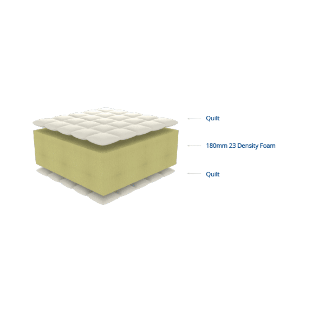 - 3-Layer High-Density Foam: 180mm thick Class 23/16 foam core with added comfort layers for improved durability and support.