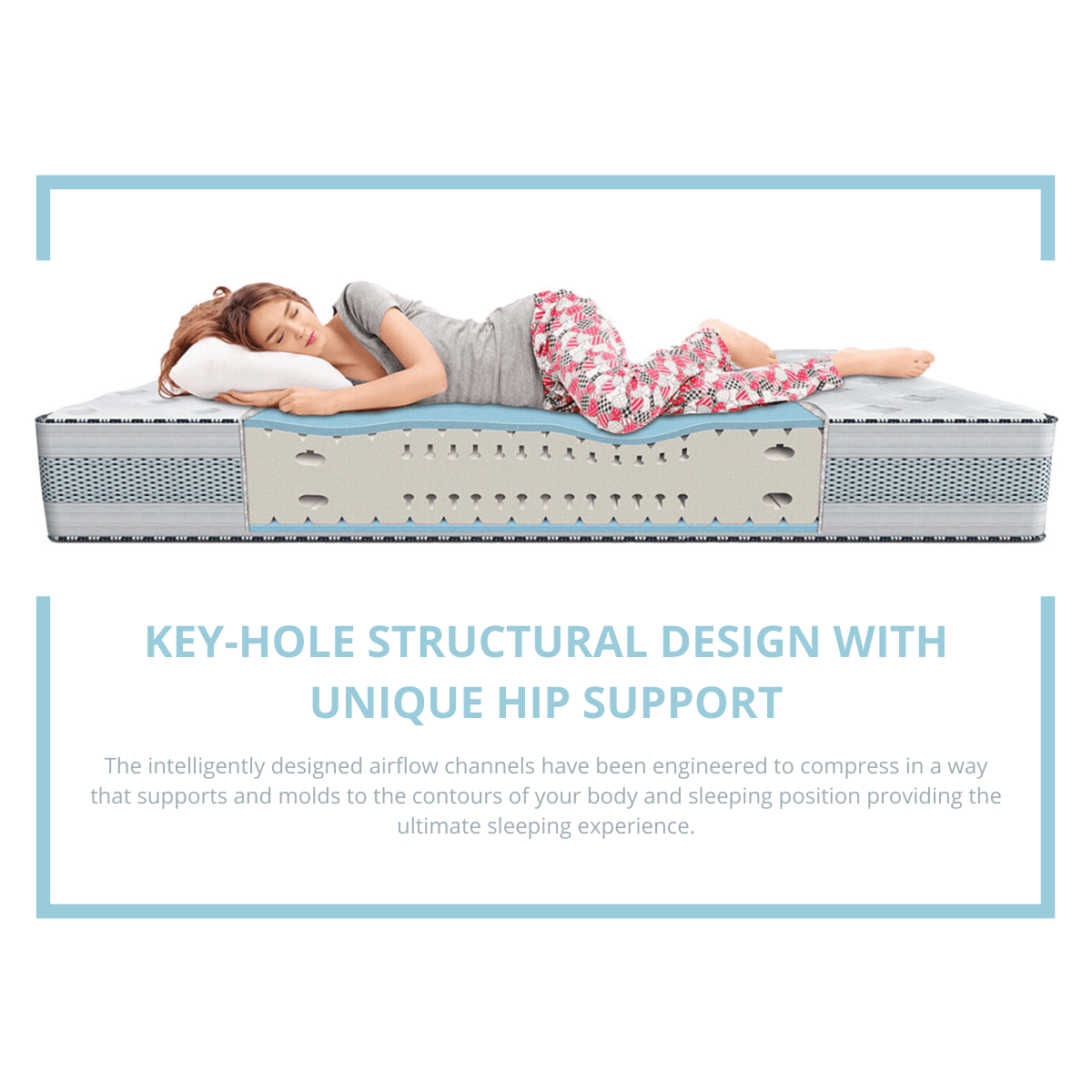 The intelligently designed airflow channels have been engineered to compress in a way that supports and moulds to the contours of your body and sleeping position providing the ultimate sleeping experience.
