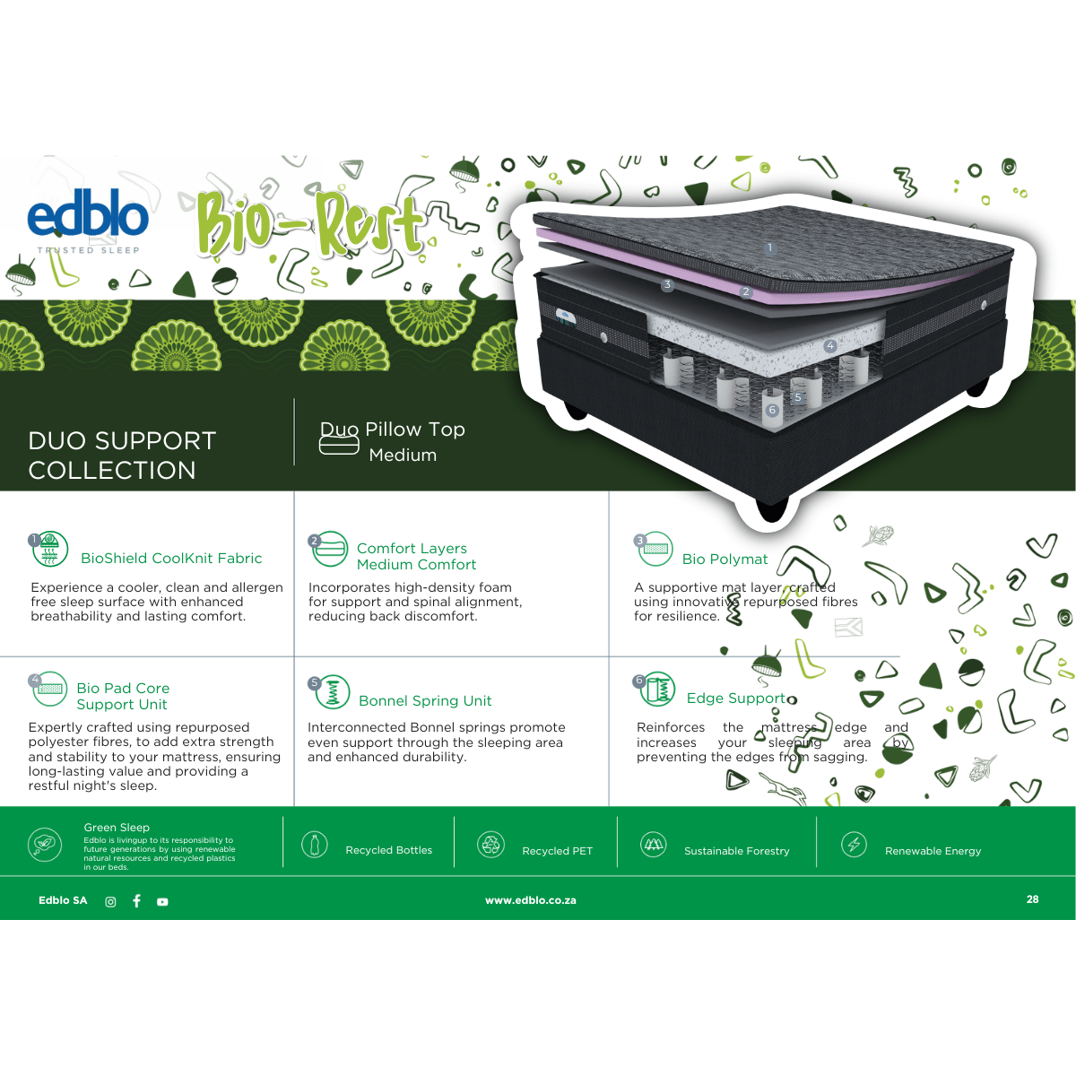 • Bio Polymat Support Layer: Crafted from repurposed fibres for added comfort and durability.