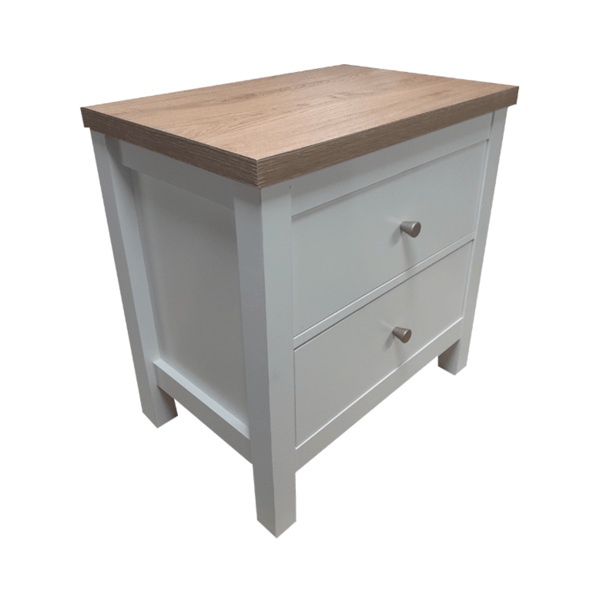 Introducing the Derby Two Drawer Pedestal a versatile storage solution for your bedroom. Featuring a sleek White/Oak finish, this pedestal effortlessly complements a variety of decor styles. With two spacious drawers, the Derby Pedestal provides ample storage space for any of your bedside essentials. Its compact design makes it ideal for small spaces, while its sturdy construction ensures durability and quality.