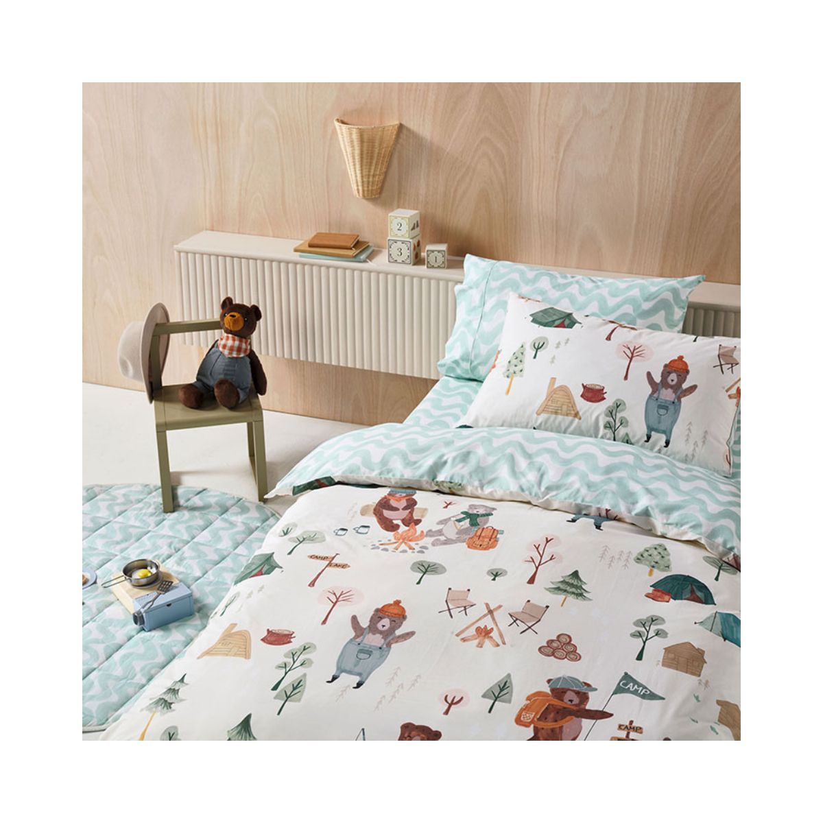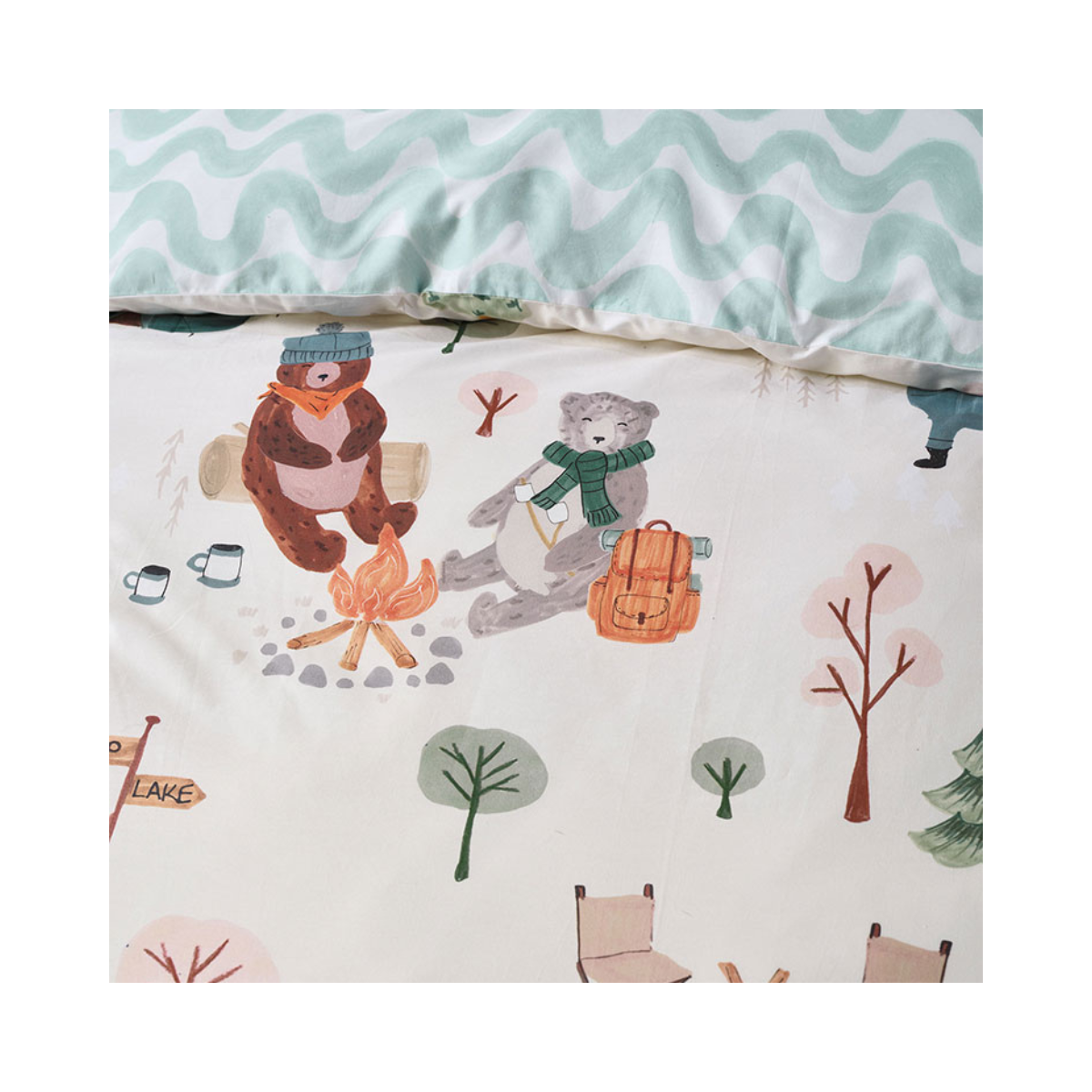 Adventure awaits with the Camping Bears Duvet Cover Set from the LH Kids range. Join a group of cuddly bears on camping fun – whether they’re toasting marshmallows, hiking, or setting up a tent, these playful companions will bring joy to bedtime.
