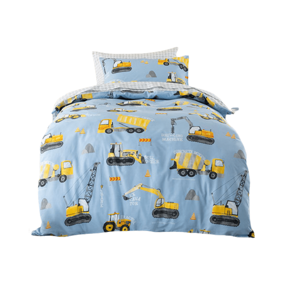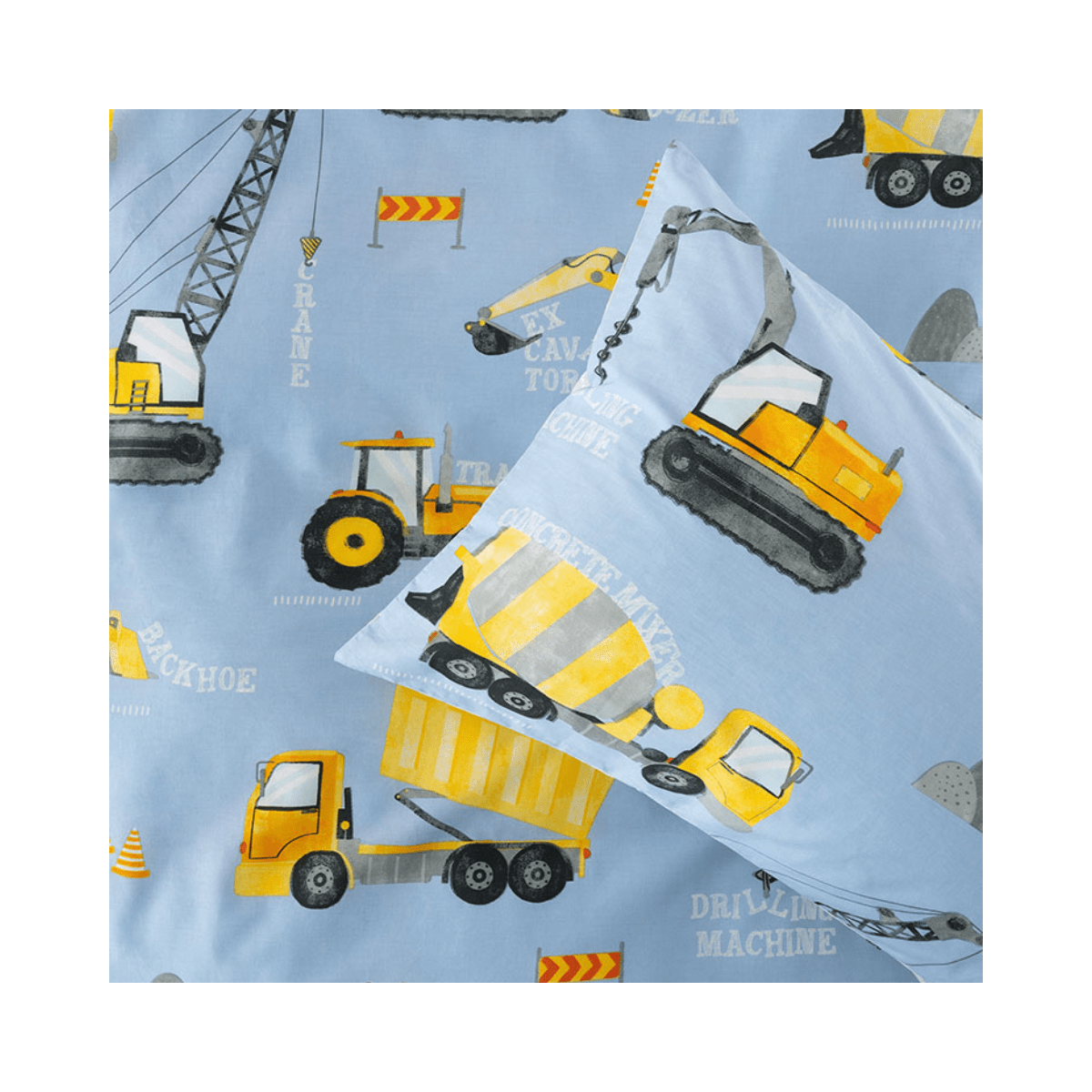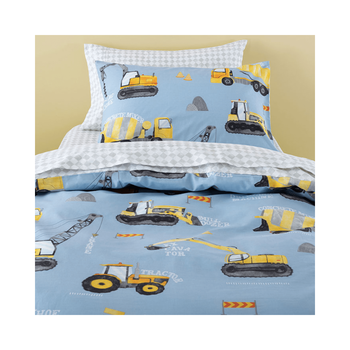 Get ready for action with the Mighty Machines Duvet Cover Set from the Poppiseed Kids range. Featuring a cool cornflower blue background filled with rugged construction vehicles, this design is perfect for little builders with big imaginations. It brings the excitement of a construction site straight into their dreams.