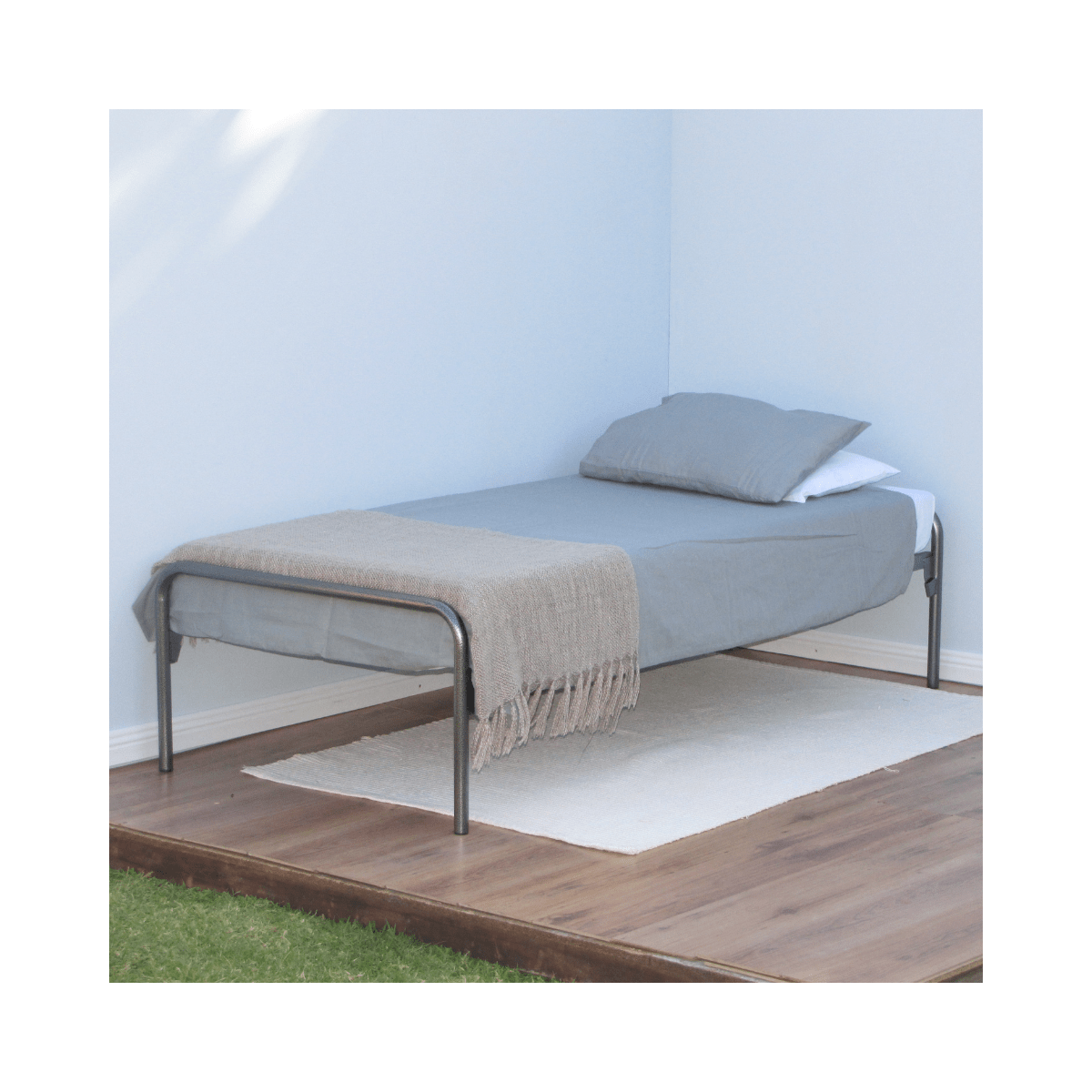 The My Space Com 1 Bed Frame – Queen is not only a sturdy, but also straightforward divan-style bed frame. It is designed for reliability as well as ease of use. Perfect for guest rooms, hostels, mining accommodations, or any setting that demands a durable and also practical bed base, this frame supports a maximum weight of 100kg per person, Heavy Duty up to 120kg.