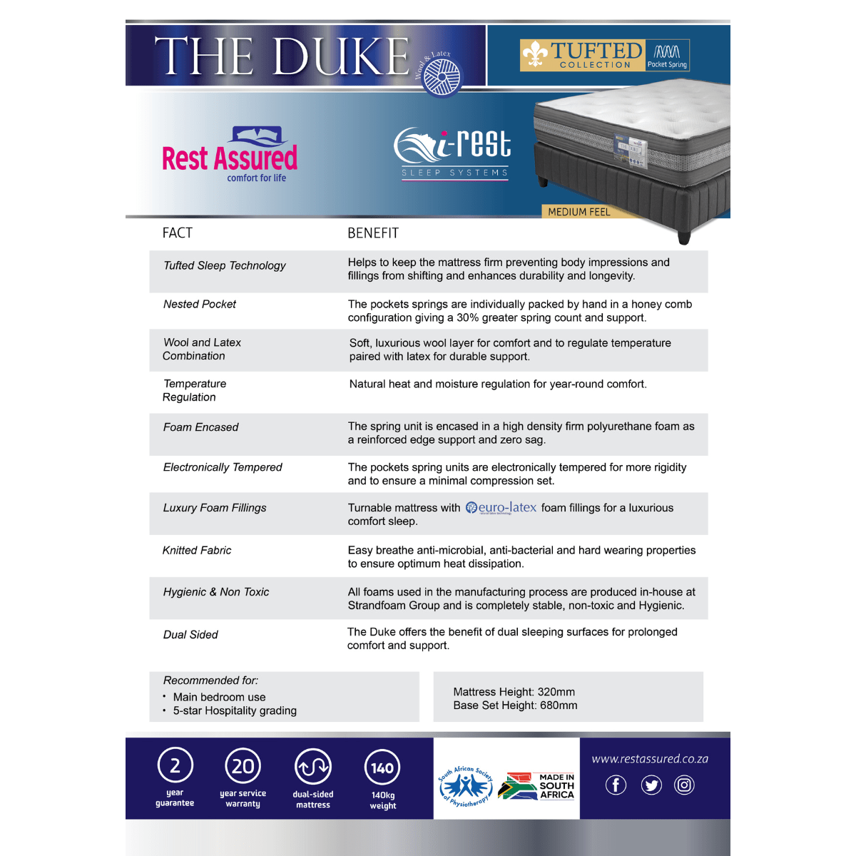 Specifications of the Rest Assured Duke Single Mattress