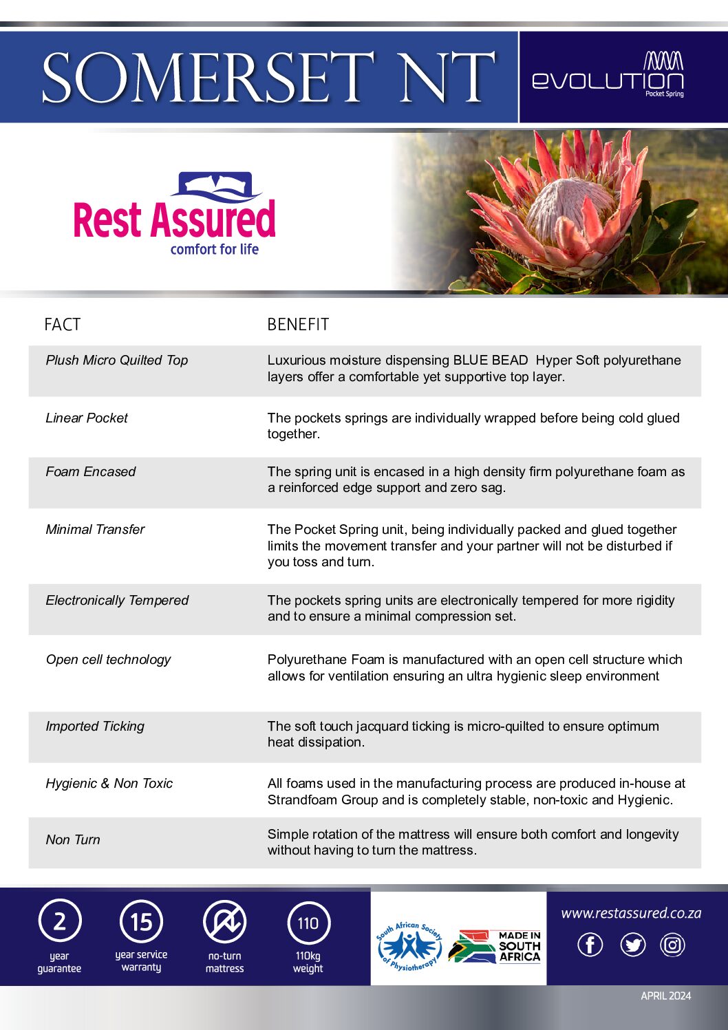 Indulge in unparalleled comfort and support with the Somerset mattress, featuring a plush micro-quilted top for a luxurious sleep experience