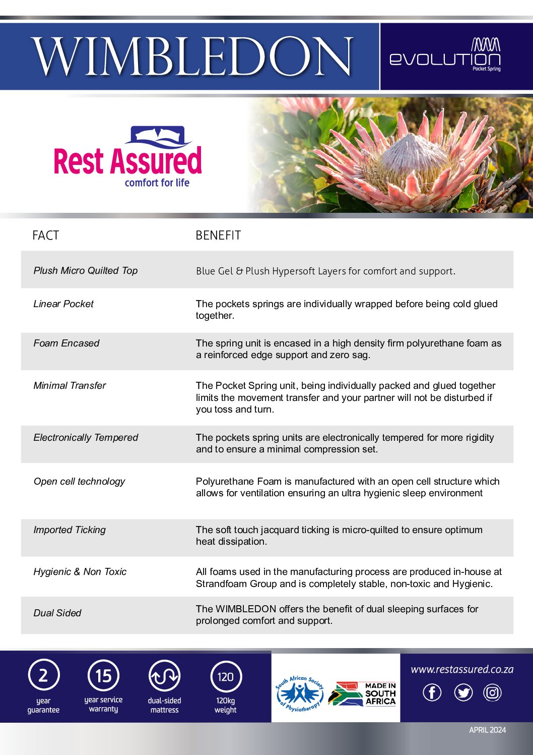 Specifications of the Rest Assured Wimbledon Double