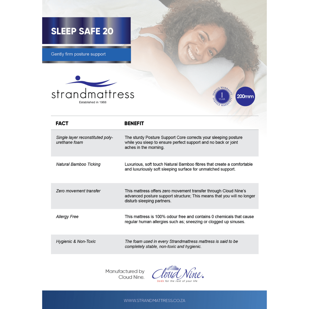 Specifications of the Strandmattress Sleep Safe