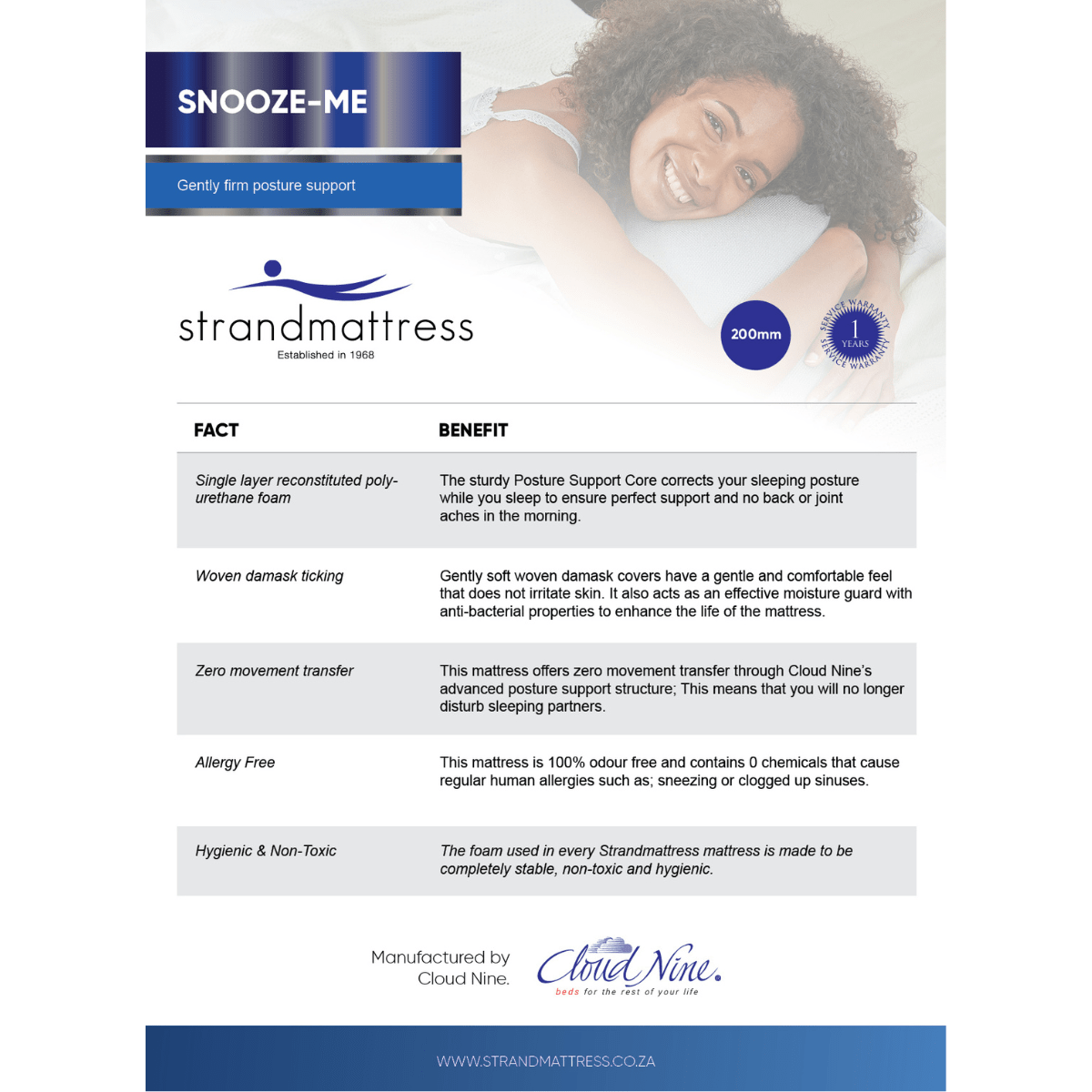 Specifications of the Strandmattress Snooze-Me