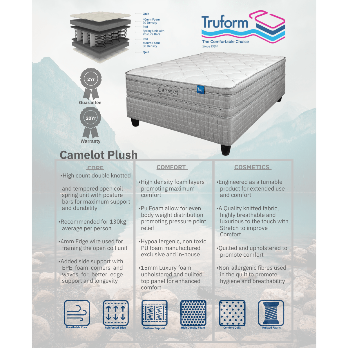 Specifications of Truform Camelot Plush King Mattress