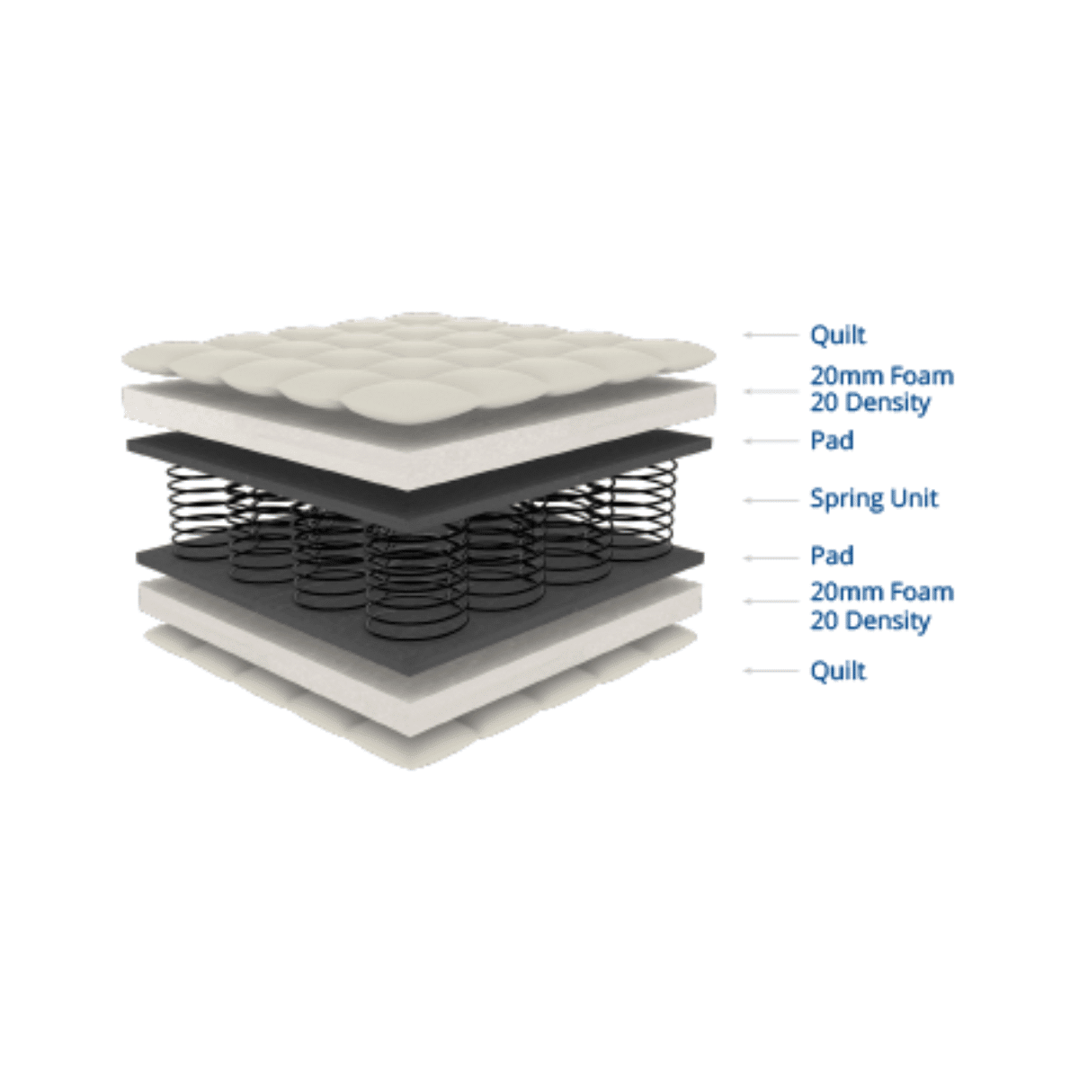 - Foam Comfort Layers (5mm + 20mm Class 20/16 Foam): Provides pressure relief and enhanced comfort.